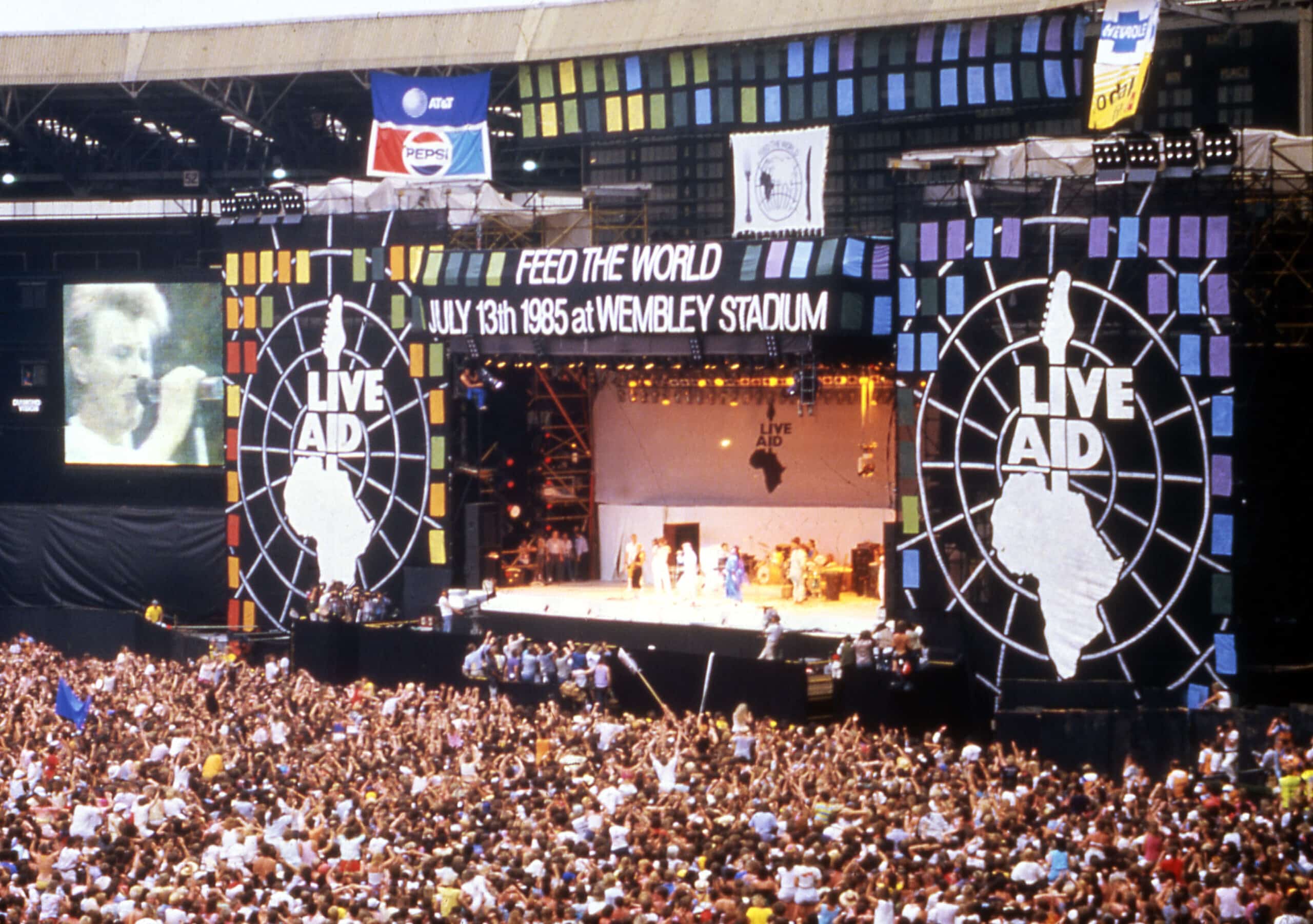 Sedici ore, per uno show con esibizioni in contemporanea in due continenti e milioni e milioni di telespettatori collegati in diretta, il primo festival televisivo della storia. L’occasione è nobile: su iniziativa dell’istrionico Bob Geldof, un nutrito gruppo di rockstar accetta di partecipare a uno spettacolo di beneficenza per raccogliere fondi destinati alle popolazioni etiopi colpite da una biblica carestia. La fame in Africa aveva già stimolato nei mesi precedenti due diversi benefit discografici (Band Aid in Gran Bretagna e USA for Africa negli Stati Uniti), ma questa volta l’idea è di un impegno in concerto.