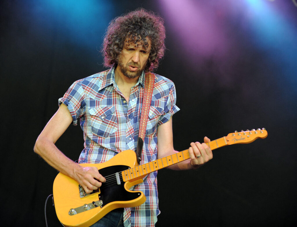 La lineup di Robinson include la 1968 Fender Telecaster, parecchie Gibson Les Paul tra cui una 50’s Goldtop, una Zemaitis, e la Gretsch White Falcon.