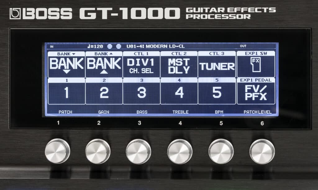 La pedaliera GT-1000 è ben equipaggiata – senza contare i due noise gate, il pedale del volume e i due preamplificatori, ci sono 18 effetti assegnabili, che possono essere utilizzati anche contemporaneamente: