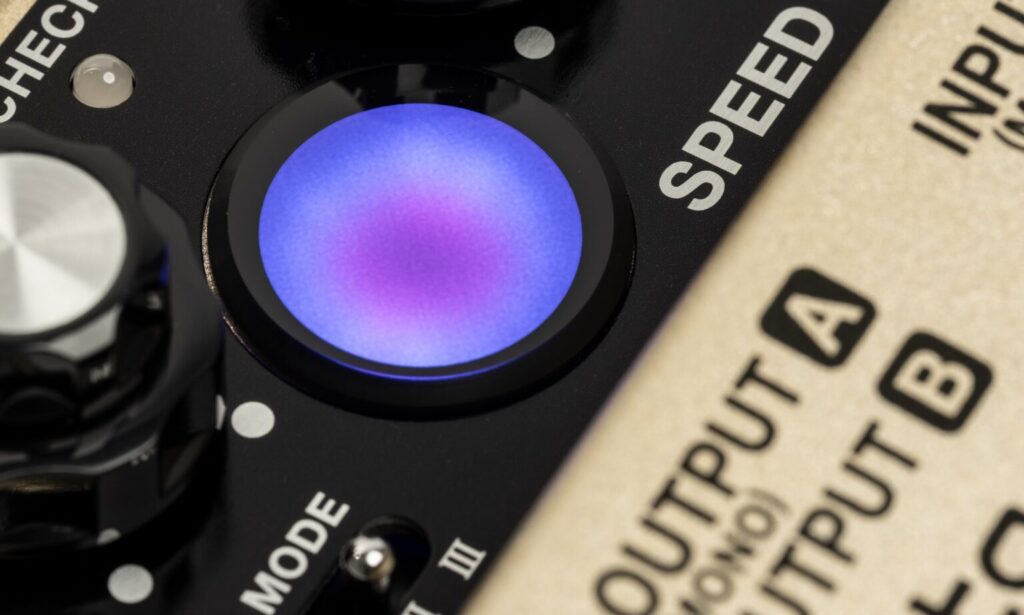 Per il test l’RT-2 è stato posto dietro un Universal Audio Dream ’65 Reverb Amplifier ed è stato registrato in stereo. Alla prima accensione, con tutti i potenziometri in posizione ore 12, l’RT-2 produce in modalità Slow il tipico suono Leslie, percepito come una miscela di vibrato, chorus e tremolo. Commutando in modalità Fast, questo mix di modulazioni produce un caratteristico “flirring” nelle frequenze alte. Senza ulteriori interventi sul suono, queste due modalità risultano già molto ispiranti e invitano a suonare lick blues e arpeggi. Il potenziometro Balance agisce come una sorta di equalizzatore, poiché influenza il rapporto tra alti e bassi e quindi anche l’intensità complessiva dell’effetto.