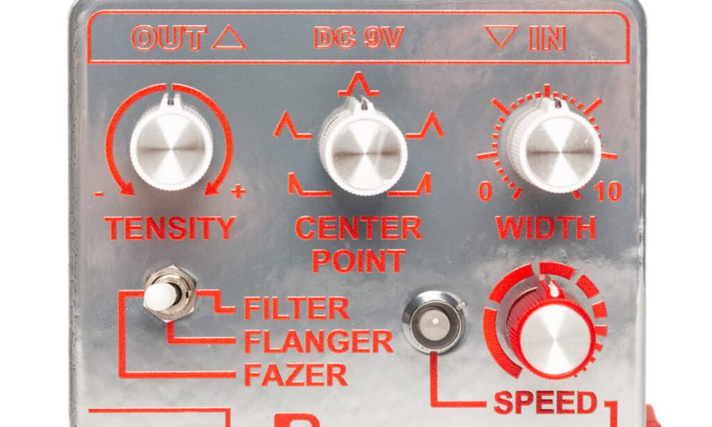 I circuiti flanger e phaser creano una copia del segnale della chitarra, sottopongono questa copia a uno spostamento periodico di tempo o di fase e generano così i filtri caratteristici (a pettine) e i movimenti d’intonazione che conosciamo dagli effetti di modulazione come vibrato, chorus, phaser e flanger. Le modulazioni sono controllate da un LFO (Low Frequency Oscillator), la cui velocità (Speed/Rate) e ampiezza (Depth/Width) possono essere regolate con quasi tutti i pedali. Altri parametri possono essere la proporzione del segnale dell’effetto reimmesso nel circuito (feedback/risonanza) o il tempo di ritardo di base del segnale da modulare (manuale).