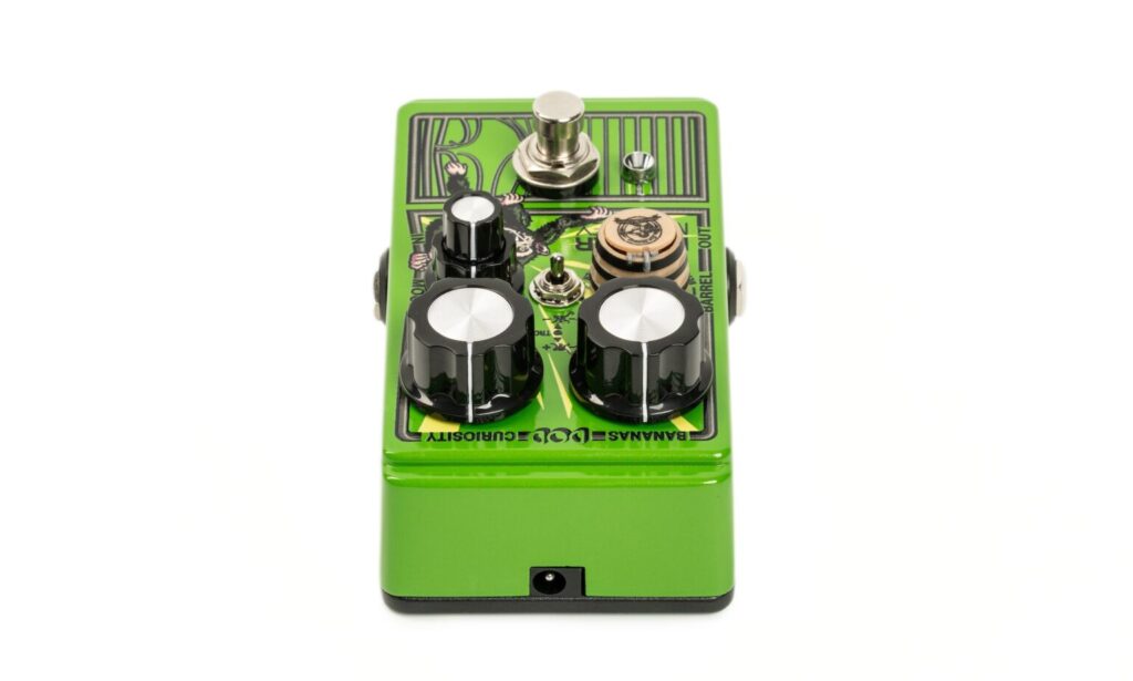 Il Badder Monkey è alloggiato in un chassis del peso di 283 grammi e dalle dimensioni (LxAxP) di 72 x 57 x 118 mm e, a differenza dell’originale, viene attivato tramite un footswitch True-Bypass. Tra gli elementi di controllo figurano un potenziometro per il grado di distorsione (Bananas) e per il volume di uscita (Curiosity), nonché un potenziometro tandem per la quantità delle frequenze alte (Screech) e basse (Grunt). Un potenziometro infinito con finitura effetto legno (Barrel) seleziona i tre circuiti overdrive (Behaved, Bad, Badder) e consente suoni Blend continui tra i circuiti. Tramite un selettore a tre posizioni si può scegliere tra una miscelazione parallela dei circuiti (+), una miscelazione con inversione di fase (-) e il funzionamento parallelo di tutti i circuiti (Troop). In quest’ultimo caso il potenziometro Barrel rimane senza funzione.