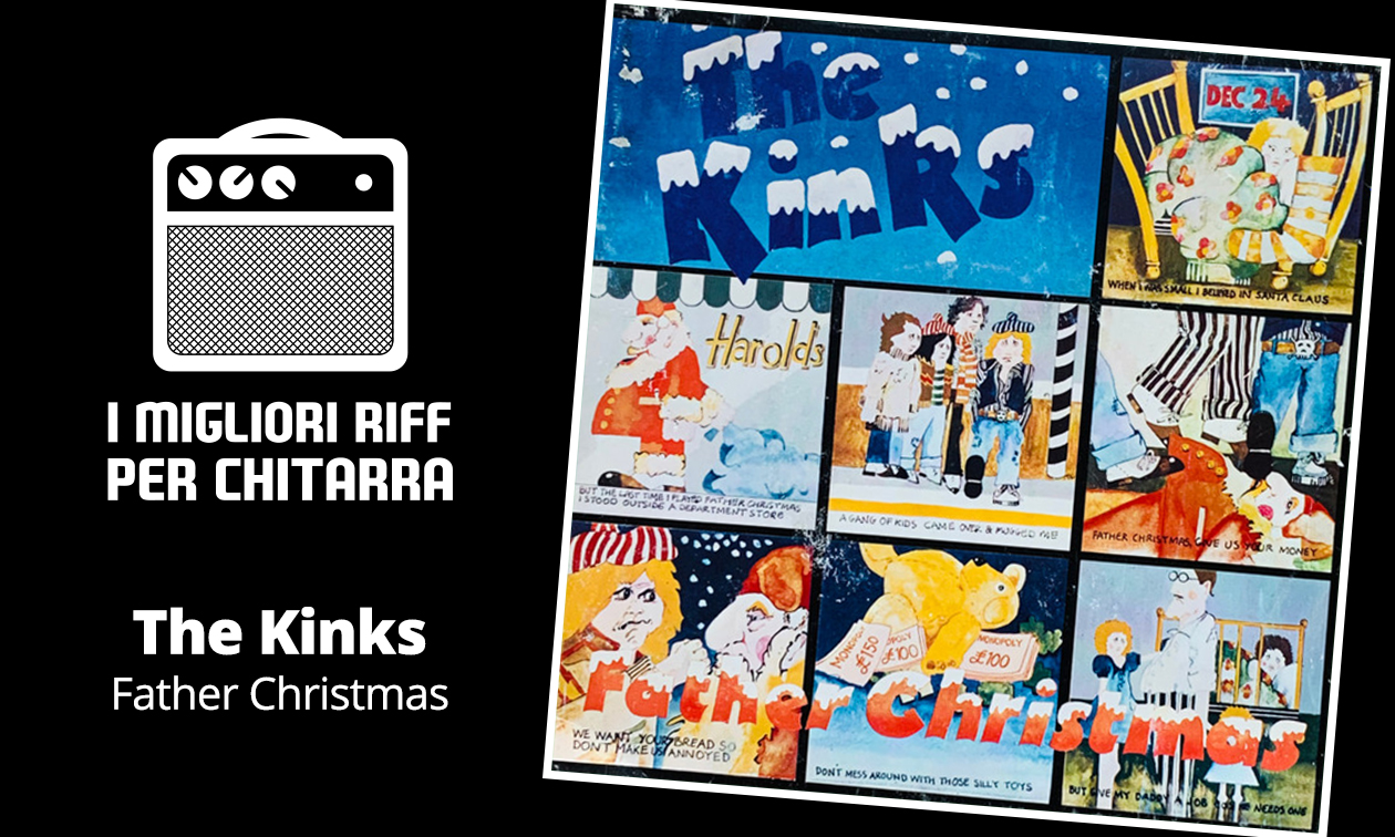 Father Christmas è in tonalità di Do maggiore e inizia con un’introduzione in tempo 6/4, seguita dalla strofa in 4/4. Dave Davies utilizza power chord, spesso suonati con palm mute. Nel ritornello entrano invece in gioco accordi maggiori pieni, eseguiti ritmicamente in classico stile punk. Nel complesso, è sorprendente notare quanti elementi e sonorità del punk revival degli anni ’90 fossero già presenti nei Kinks. Quando suonate, fate quindi particolare attenzione a questo aspetto. Il tutto deve tranquillamente risultare un po’ “sciolto”.