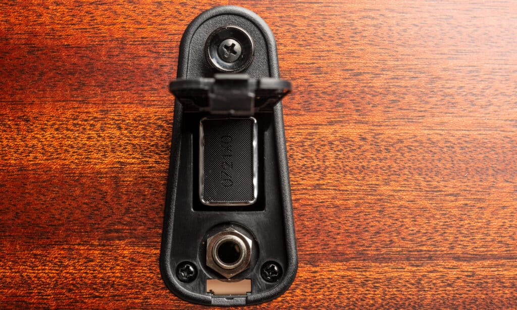 Lo strumento viene consegnato dal produttore con un pickup piezoelettrico Fishman. Il segnale del pickup può essere regolato con due controlli per il volume e il tono, situati nella parte superiore della buca. Quest’ultima funzione aumenta un po’ i bassi e gli alti quando viene aumentata, in modo che il suono appaia più hi-fi, se necessario. Come nel caso della Martin D-10E, c’è anche un piccolo accordatore installato che disattiva il segnale del pickup quando è acceso.