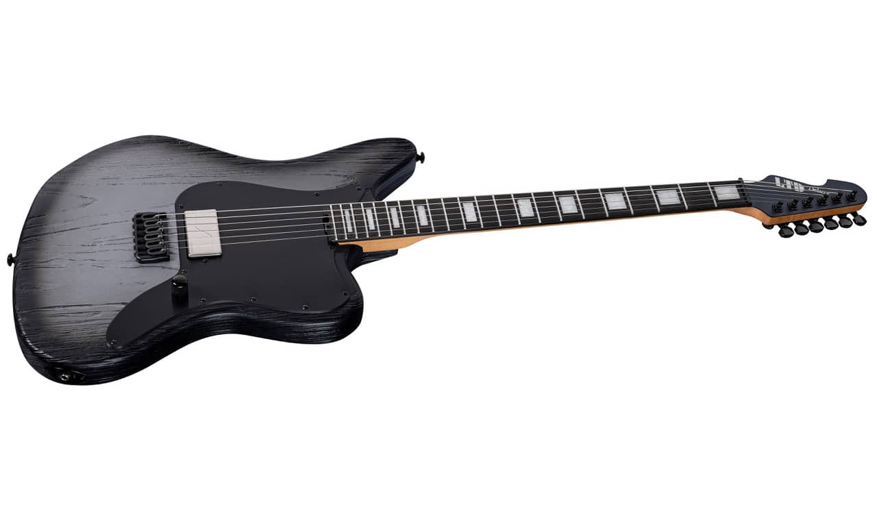 Infine, è stata ampliata anche la serie XJ, che ricorda la Fender Jaguar. La ESP LTD XJ-1 Baritone Silver Blast è un altro strumento che predilige le venature del frassino di palude. Il manico in tre pezzi in acero con paletta rovesciata è avvitato e dotato di una tastiera in ebano. Come modello baritono a sei corde, la lunghezza della scala è di 27′. Il ponte hipshot e le meccaniche autobloccanti sono progettati per garantire un’accordatura stabile e il singolo humbucker Fishman Fluence Modern al ponte offre un suono deciso, come sempre con tre voicing.