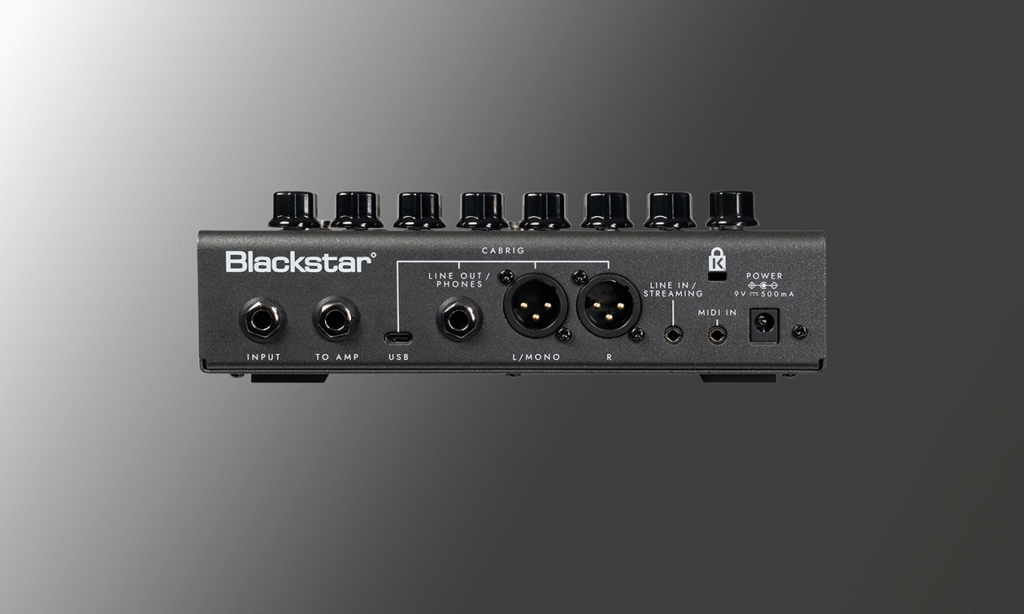 • Connessioni: Input, To Amp, FX Loop, Line Out / Phones, Line In / Streaming, USB-C, XLR Out, MIDI In / Thru