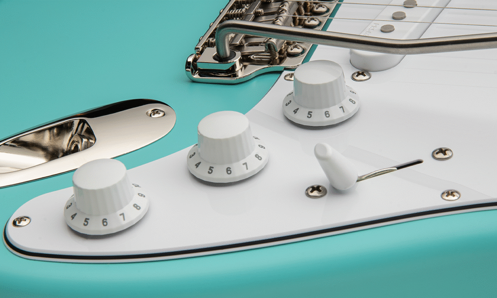 Per l’hardware produttore e artista hanno optato per un sistema di vibrato in acciaio di produzione interna e meccaniche vintage bloccanti – entrambe in nichel.