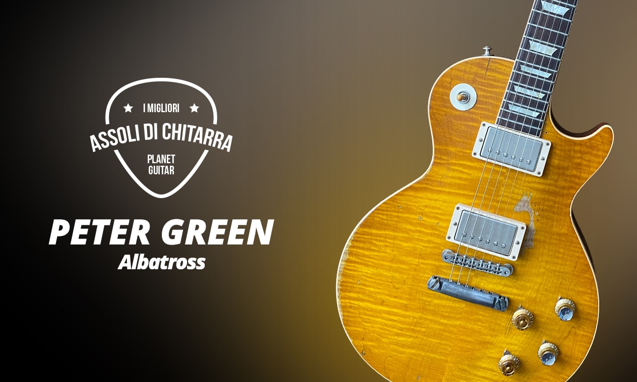 Il brano “Albatross” si muove in E maggiore e inizia con un bel motivo di accordi composto da A/E e G#m/E. La parte B ha alcuni passaggi a due voci, conditi da bellissimi bending e da un grande vibrato. Tra l’altro, nell’originale si possono sentire interventi di lead nelle pause del tema, che sono suonate con molto riverbero.