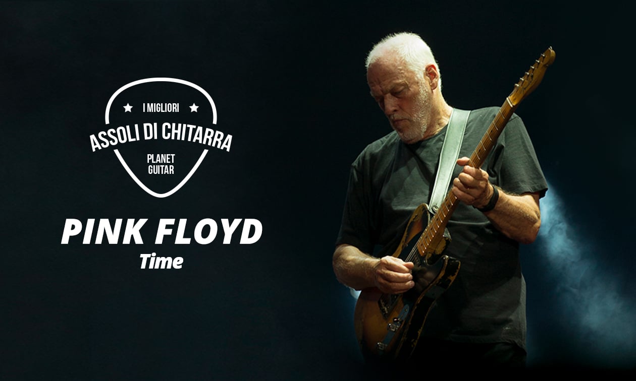 Per “Time”, il fuzz è ciò che ci interessa principalmente! Nell’assolo di “Time” ci sono diverse take di chitarra che si fondono l’una nell’altra. Ma ho scritto qui l’assolo in una soluzione unica, in modo che possiate suonare insieme a me l’assolo nella sua interezza.