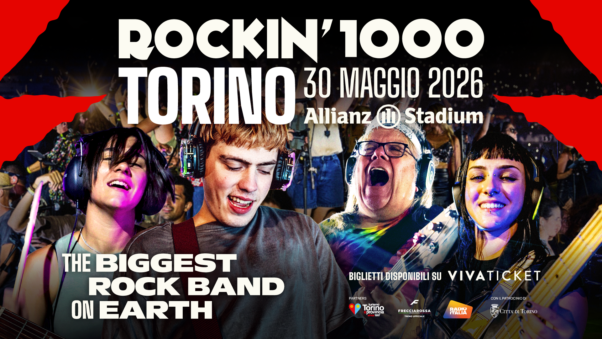 Rockin’1000 si esibirà sabato 30 maggio all’Allianz Stadium di Torino, segnando il ritorno del progetto nella città dopo l’apparizione del 2022 durante l’Eurovision Song Contest.