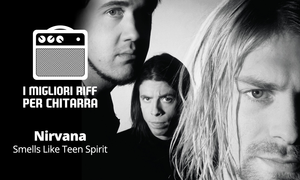 Ecco il riff di Smells Like Teen Spirit. Prendete la partitura con le pinze perché Kurt varia leggermente il ritmo e le ghost notes ogni volta, ma la partitura dà una buona base.