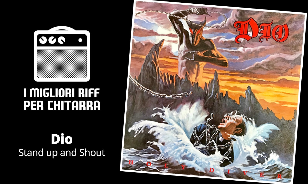 “Stand up and Shout” è in chiave di Am, con accordi di dorico ed eolio minore che si fondono. Il riff di apertura consiste in power chords in quartine sulle corde di D e G, che in realtà è quasi un marchio di fabbrica dei riff dell’heavy metal e dell’hard rock degli anni Ottanta. Nel pre-chorus si passa alla sottodominante di D. In seguito, una linea semicromatica con armonici artificiali riporta al riff principale in A. Il brano si sviluppa su un tempo abbastanza sostenuto, ma consiglio di utilizzare esclusivamente plettrate discendenti. Il suono è molto più autentico in questo modo.