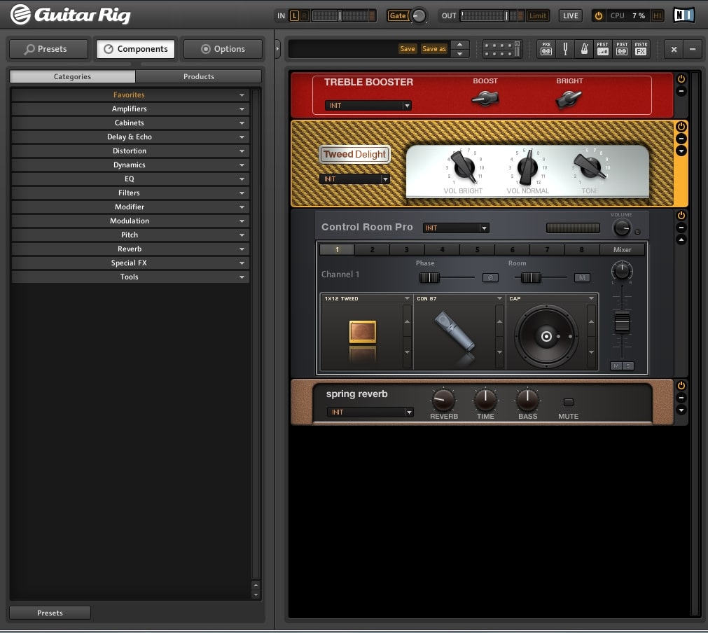 Come già accennato, Carlton suona in modo relativamente puro in un Fender Tweed, che non offre comunque molte opzioni di controllo dei toni. Se si vuole, si può anche usare un riverbero moderato. Ecco come potrebbe apparire la configurazione: