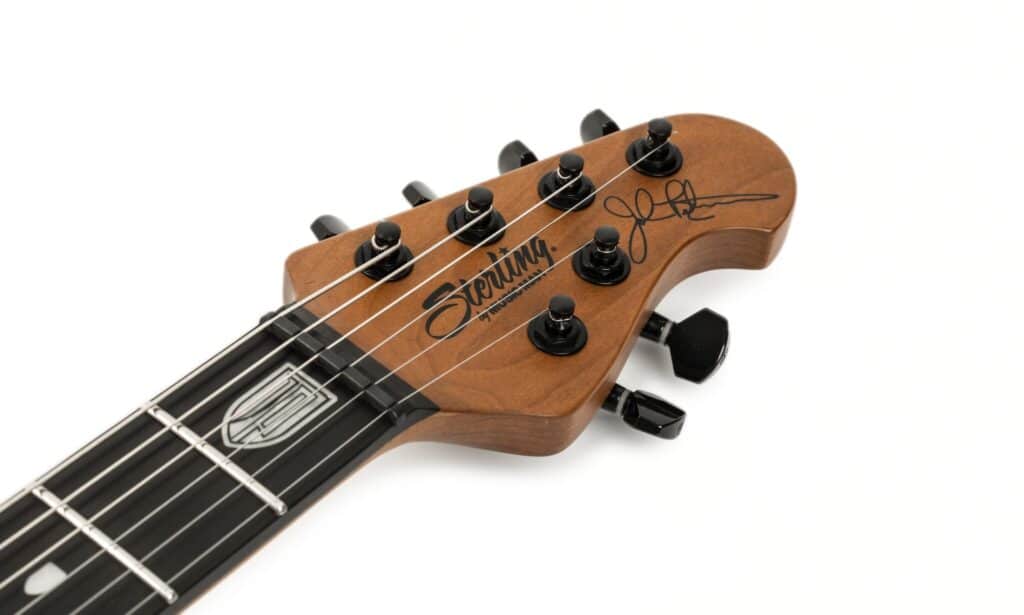 La Sterling by Music Man JP150DFM John Petrucci Signature offre una lavorazione affidabile e un’eccellente suonabilità, con un design chiaramente orientato ai modelli Music Man di alta qualità. In particolare, il manico in acero roasted con tastiera in ebano e tasti in acciaio inossidabile garantisce comfort e stabilità. In termini di suono, la chitarra offre un suono deciso high gain con medi molto compressi, che ben si adatta agli stili rock/metal e progressive moderni. Nelle impostazioni pulite, tuttavia, i pickup suonano in modo poco spettacolare e poco dinamico, come spesso accade con gli humbucker potenti.