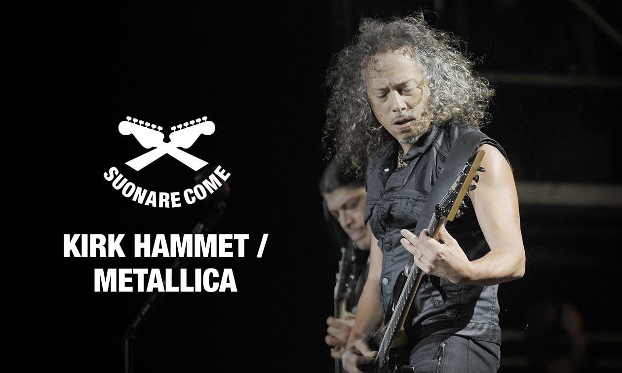 Entriamo ora nel mondo solistico di Hammett. Con Kirk troviamo molti elementi della scala blues, della pentatonica e della scala minore naturale o dorica. Molto spesso incontriamo arpeggi triadici e passaggi in tapping, pattern ripetuti o sequenze di scale spostate, ma anche doublestop blues. Hammett ama anche usare il pedale wah wah nei suoi assoli.