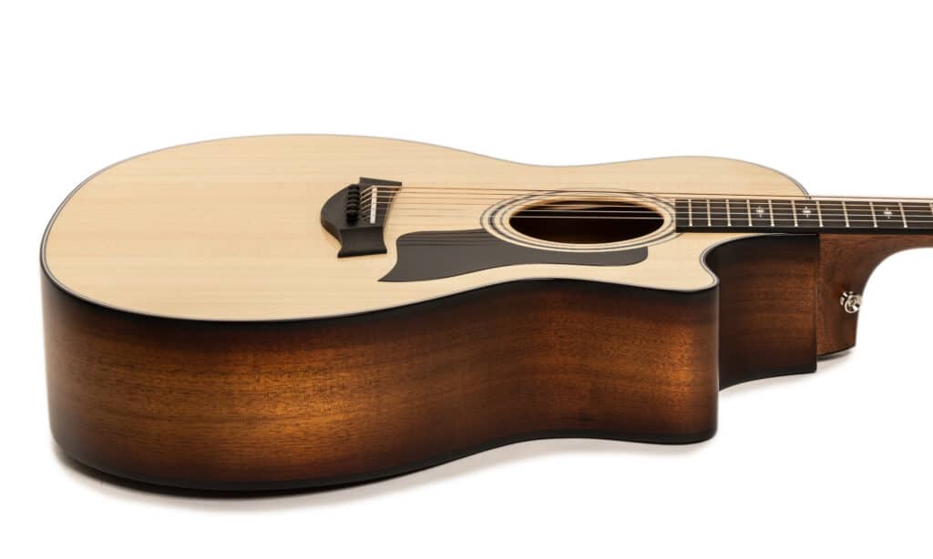 Il nome del prodotto lo rivela già: il legno Koa, originario esclusivamente delle Hawaii, svolge un ruolo importante nella 314Ce ed è utilizzato per il fondo e le fasce. Sebbene le venature non siano così spettacolari come quelle dei modelli 700, ad esempio, il legno offre un interessante contrasto con il top, con la sua colorazione rosso-marrone e la finitura sfumata. Per questo è stato scelto l’abete Sitka.