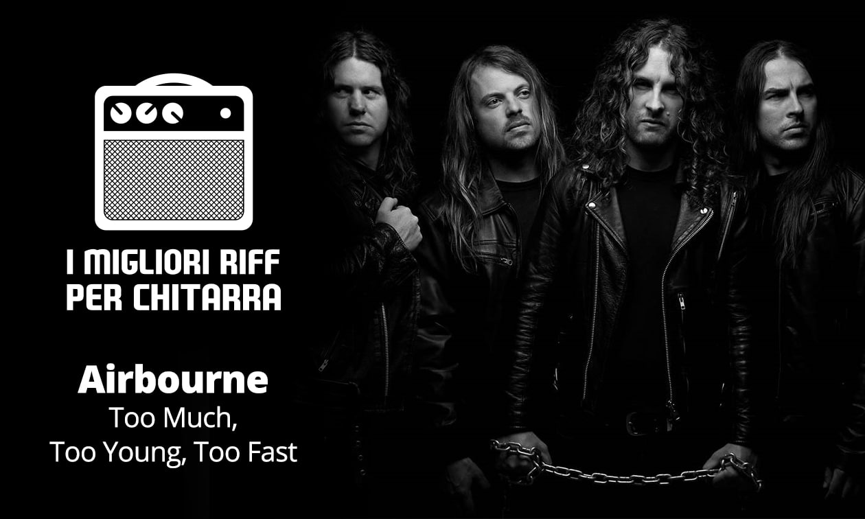 Ricordo ancora il primo giorno che mi capitò di ascoltare questa band: ero convinto si trattasse di un nuovo brano degli AC/DC dalle prime note! E invece no, erano gli Airboune! Cosa dite? Come i Greta Van Fleet sono un po’ gli eredi spirituali dei Led Zeppelin, gli Airbourne lo saranno per quanto riguarda gli AC/DC? Scopriamolo insieme imparando il riff che introduce Too Much, Too Young, Too Fast.